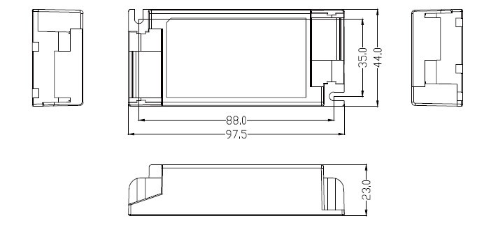 - DIP-kapcsolóval állítható kimeneti áram: Rugalmasan konfigurálható 150 mA és 500 mA között (150, 200, 250, 300, 350, 400, 450, 500 mA), így egyetlen tápegység számos különböző lámpatesttel kompatibilis.