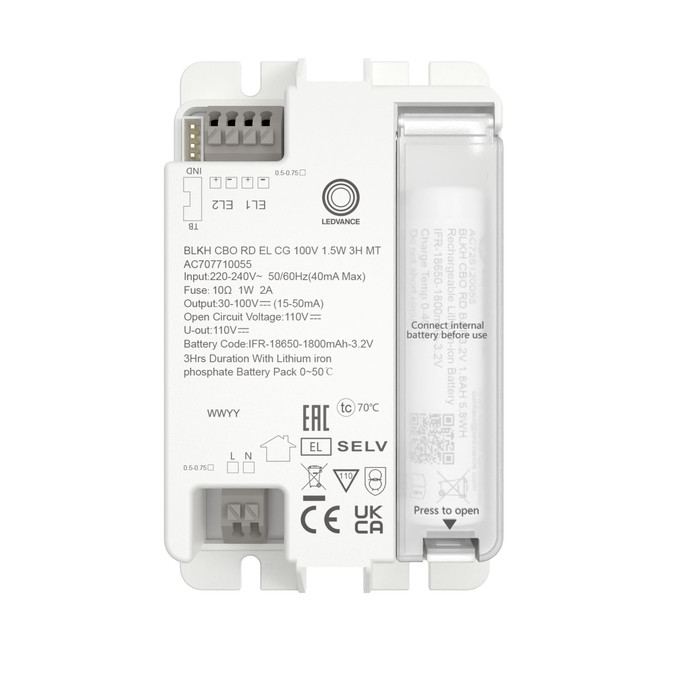 A LEDVANCE Bulkhead Combo Round Emergency Kit egy Plug & Upgrade bővítő modul, amely lehetővé teszi a kompatibilis Bulkhead Combo Round lámpatestek gyors átalakítását vészvilágító lámpává.