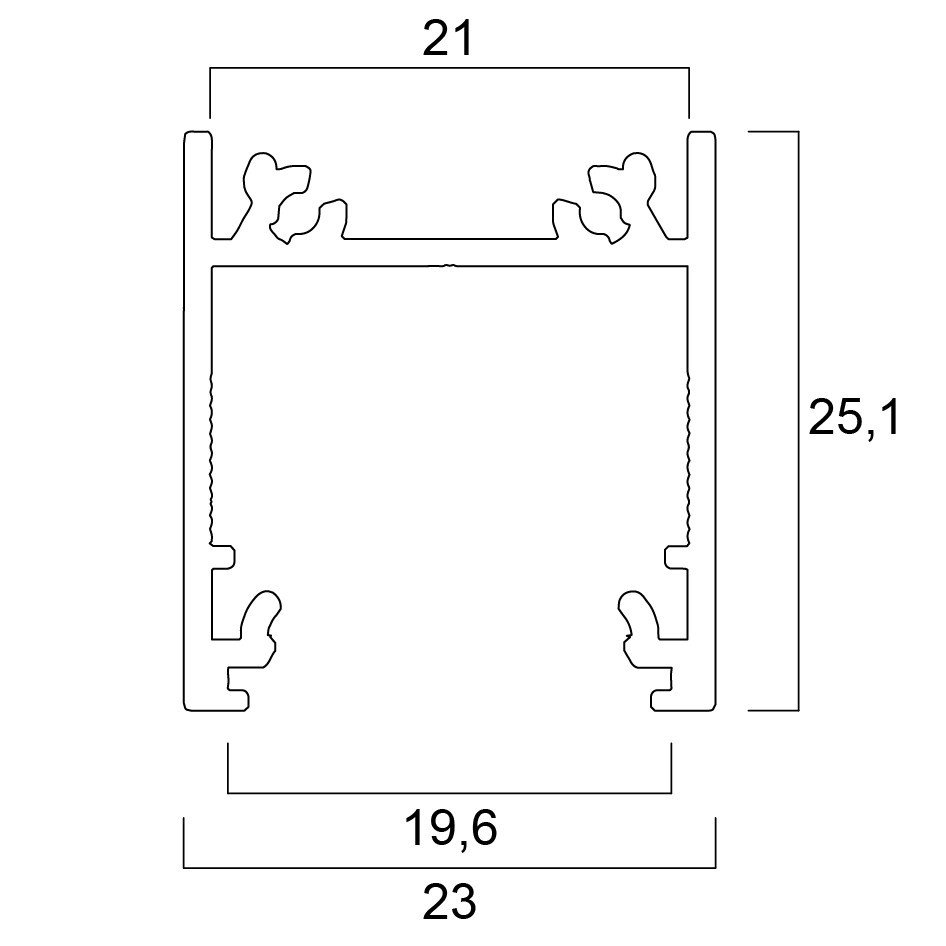 "Sylvania SDS" profil szélessége: 23 mm"Sylvania SDS" profil falvastagsága: 2 mm"Sylvania SDS" profil belső szélessége: 19,6 mm"Sylvania SDS" profil magassága: 25,1 mm"Sylvania SDS" profil beépítőváll szélessége: NincsA profil nem tartalmazza a takaróprofilt sem a végzárót!